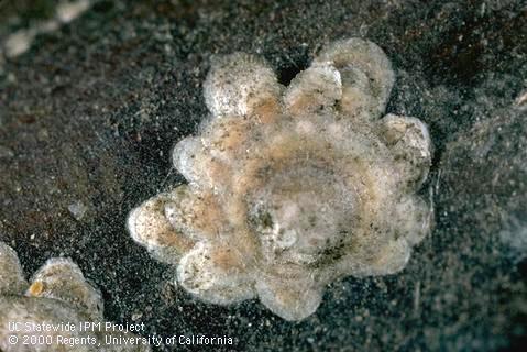 A well-timed and thorough spray of horticultural (narrow-range) oil during the dormant season, or soon after scale crawlers are active in late winter to early summer, can provide good control of most species of scale. Certain scale problems on large plants and hosts especially sensitive to scale damage may warrant the application of a systemic insecticide. If plants perform poorly or are repeatedly damaged by pests, the best course of action may be to replace the plant with a pest-resistant species or cultivar that is better adapted to the site conditions. Read more from the UC IPM website.