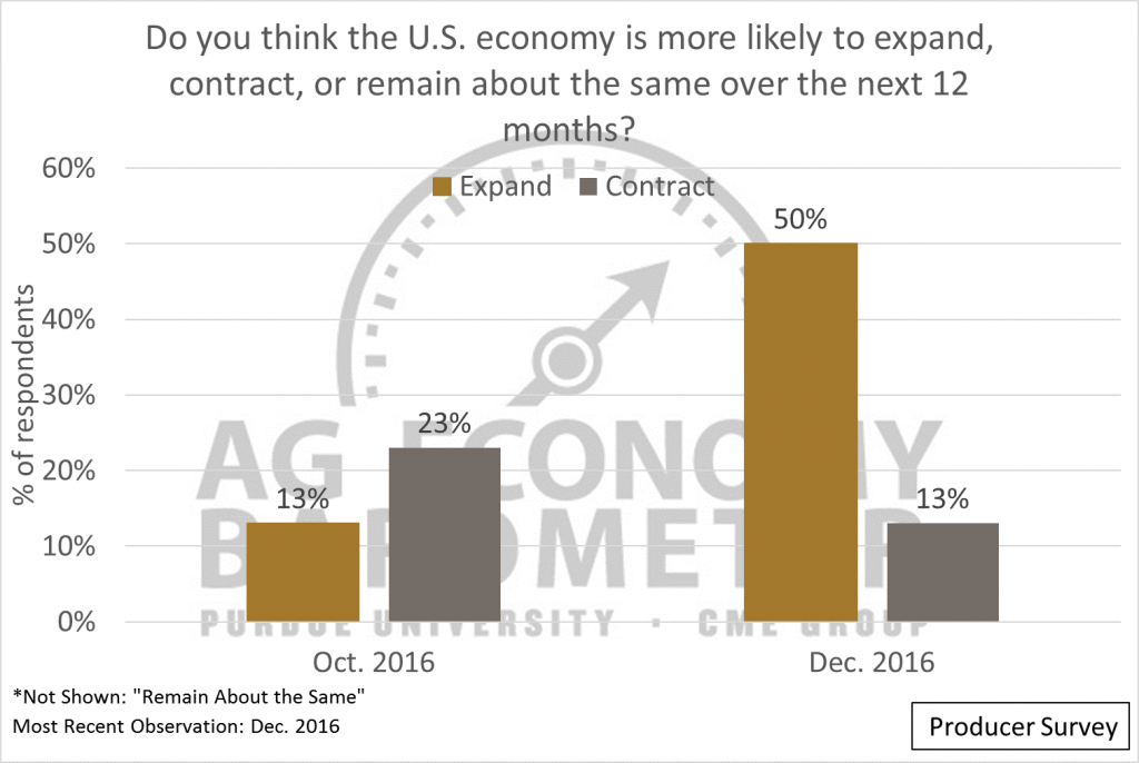 Figure 3. Producer expectations about the U.S. economy over the next 12 months, October 2016 and December 2016.