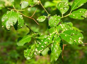 (bottom left) Harmful insects on tree leaves.