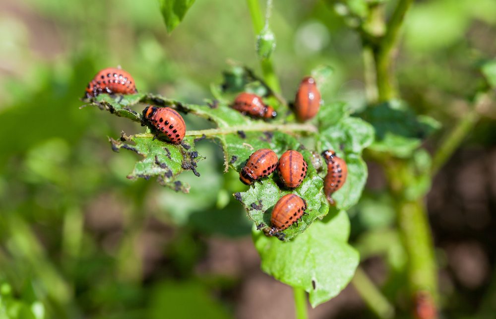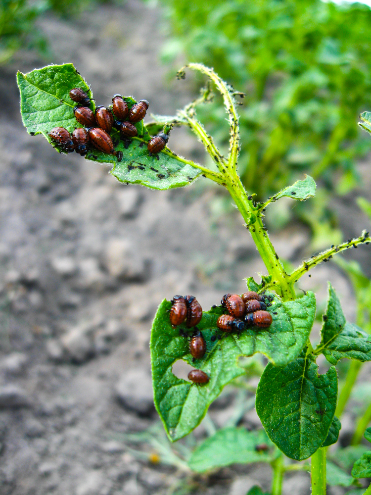 - colorado gluttonous bugs sitting on a leaf of a potato plant