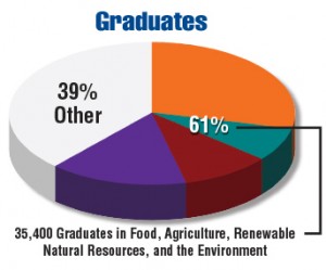 College graduates with expertise in food, agriculture, renewable natural resources, and the environment are essential to our ability to address the U.S. priorities of food security, sustainable energy, and environmental quality. Graduates in these professional specialties not only are expected to provide answers and leadership to meet these growing challenges in the United States, but they also must exert global leadership in providing sustainable food systems, adequate water resources, and renewable energy in a world of population growth and climate change.