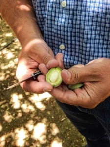 - Jizmejian cuts into a green almond.