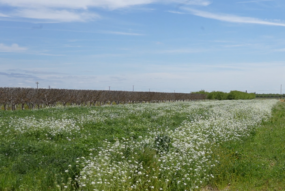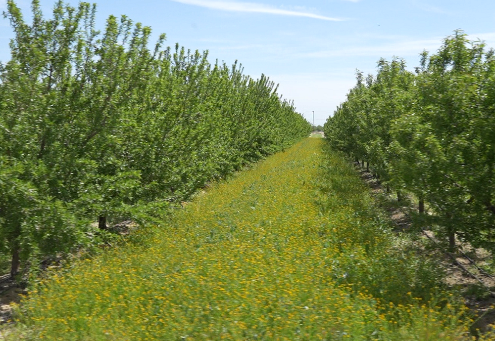 “We realized that those spots in which we had cover crops the soil quality was a little bit better than where we just had fallow areas throughout the wintertime. Then we started observing that our cover crops were helping different pollinators,” Cabrera noted. “They were attracting local, native pollinators. So not only the honeybees, or bees specific to pollinating almonds, but also the native populations were increasing also.”