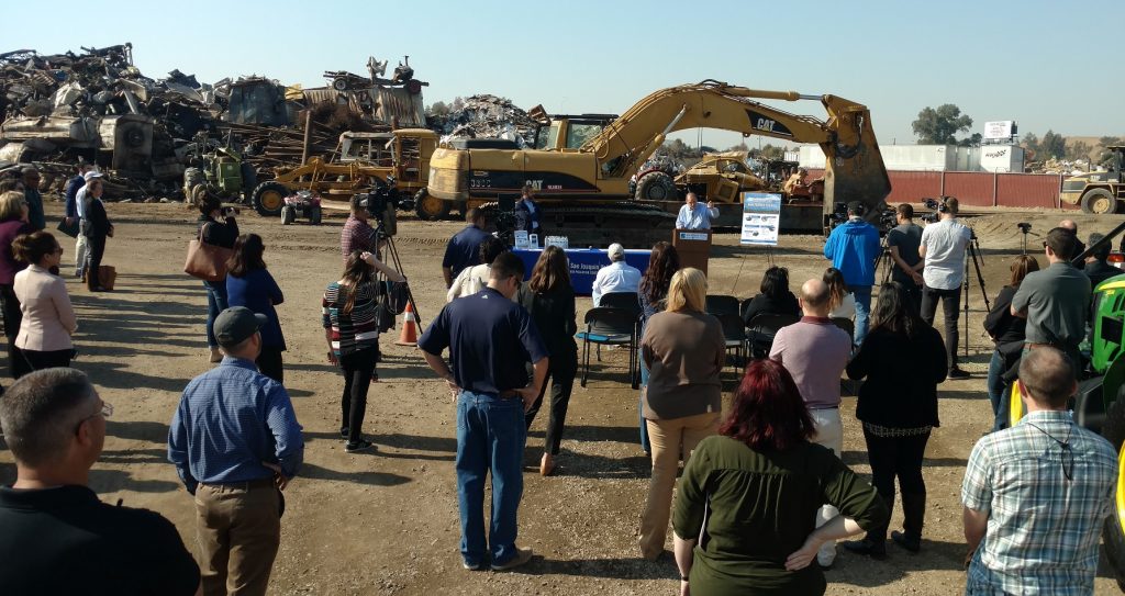 The end results of the FARMER program were put on full display for several assembly members, industry group leaders and members of the media at a recent event held in Fresno. Attendees witnessed the destruction and recycling of older farm equipment that has been replaced by newer models that are more efficient and have lower emission levels. The event was a celebration of the $108 million that was awarded through the Funding Agricultural Replacement Measures for Emission Reductions (FARMER) program.