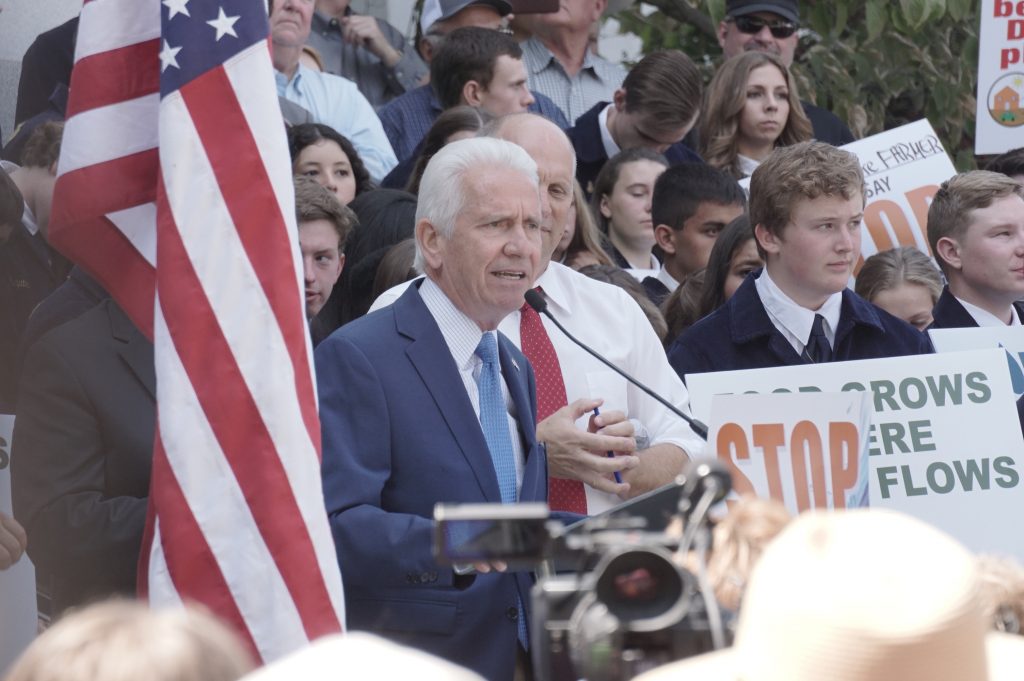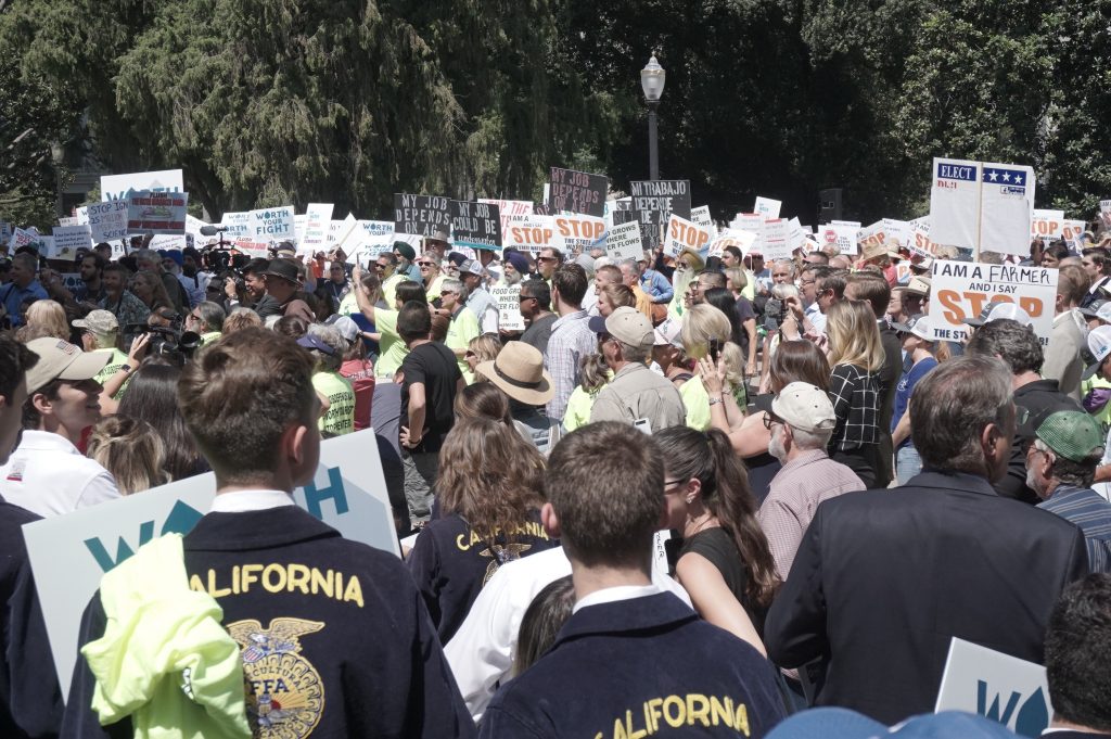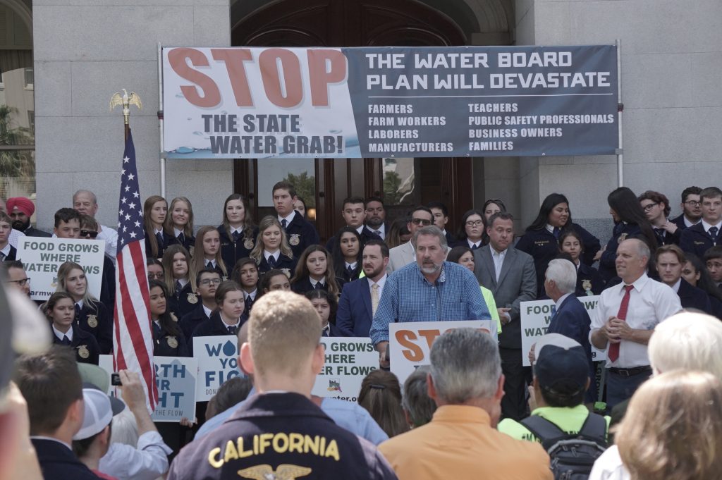 The water rally that took place on the steps of the Capitol Building on Monday brought growers, farm workers, congressmen, and other community members together to voice their discontent with the State Water Resources Control Board’s proposed plan for water flowing through the Lower San Joaquin River and Southern Delta. Approximately 1,500 people attended the event, with many holding signs that read ‘Worth Your Fight’ and ‘Stop the State Water Grab.’