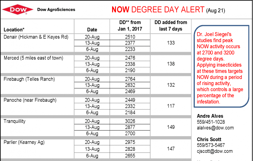 Dow Degree Day Report: NOW in Pistachios, August 21