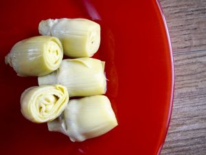 You can find artichoke hearts that are packed in vinegar, oil or marinade and canned. They make for a great low sodium snack and lend themselves well to other snacks like artichoke dip, as well as a pizza topping.