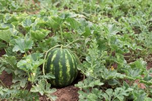 Watermelon is a vine-like flowering plant originally from southern Africa. Its fruit, which is also called watermelon, is a particular kind referred to by botanists as a pepo, a berry which has a thick rind and fleshy center. The fruit was likely first cultivated for its ability to hold plentiful water in a desert landscape, especially since the wild melon was bitter or tasteless.