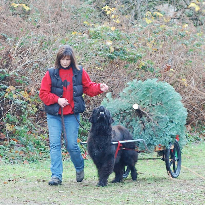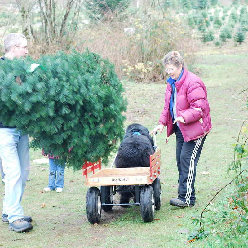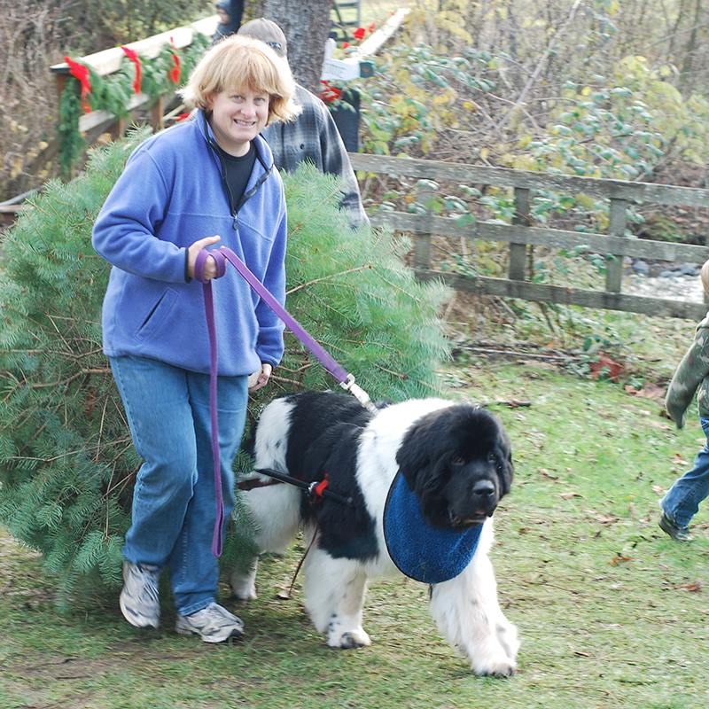 And Newfoundland Dogs are great big lovable long-haired slobbery pets. So the first Sunday in December the club brings their dogs to our farm and they use them to pull trees up out of the field for tips and donations. It’s our most crowded day people come just to see the dogs work and it’s common for them to raise a good amount of money.