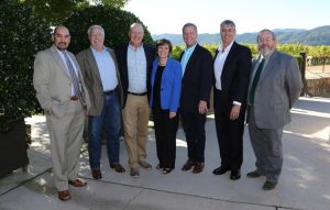 - CDFA Secretary Karen Ross (center) with current and former County Agricultural Commissioners whose work was vital to the eradication effort. From left: Humberto Izquierdo (Alameda), Dave Whitmer (Napa, retired), Eric Lauritzen (Monterey), Greg Clark (Napa), Tony Linegar (Sonoma), and Jim Allan (Solano).