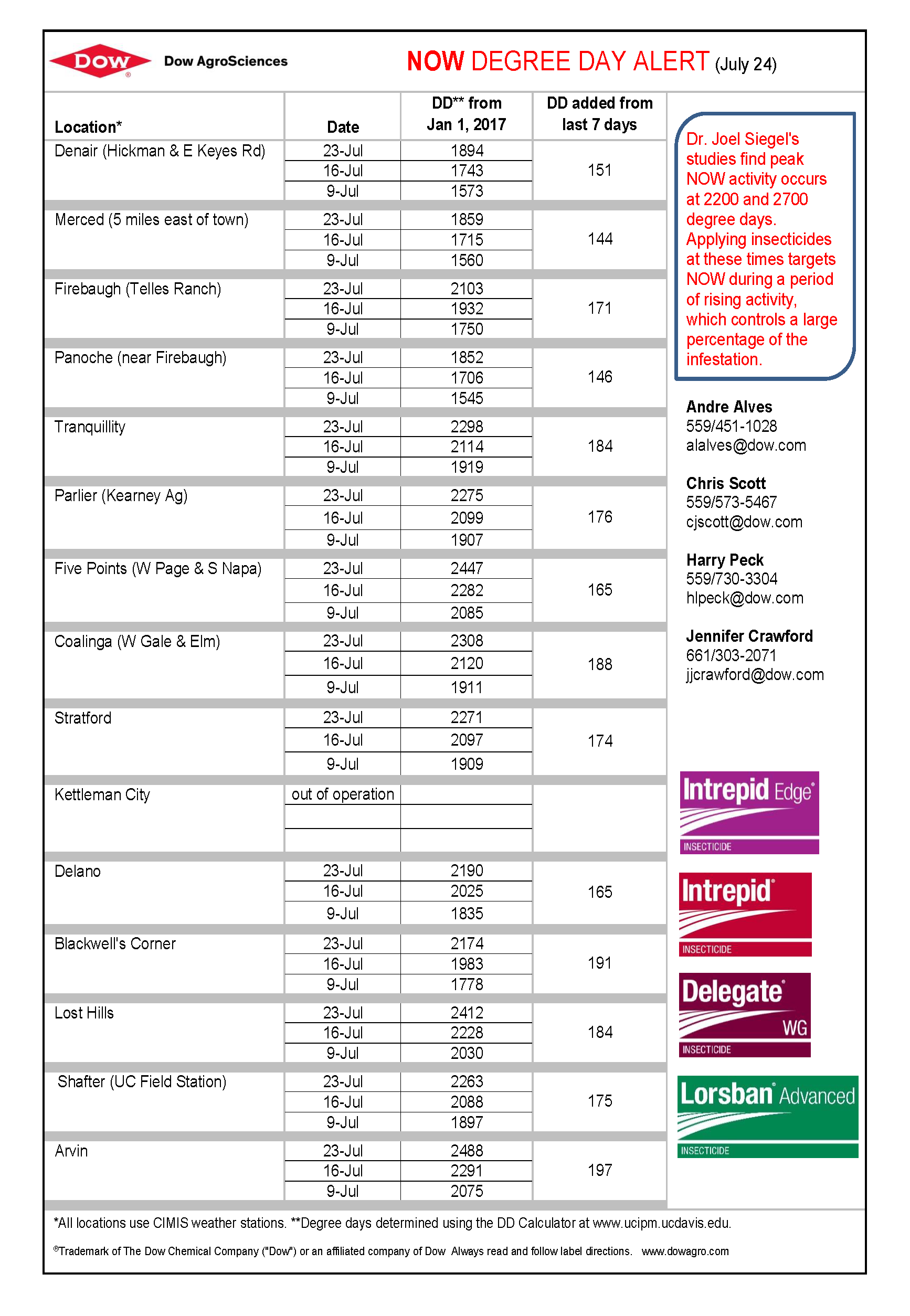 NOW Degree Day reports are sponsored by Dow AgroSciences and Intrepid Edge insecticide.