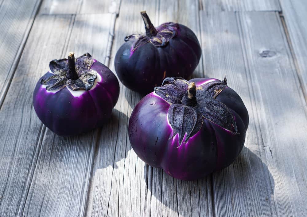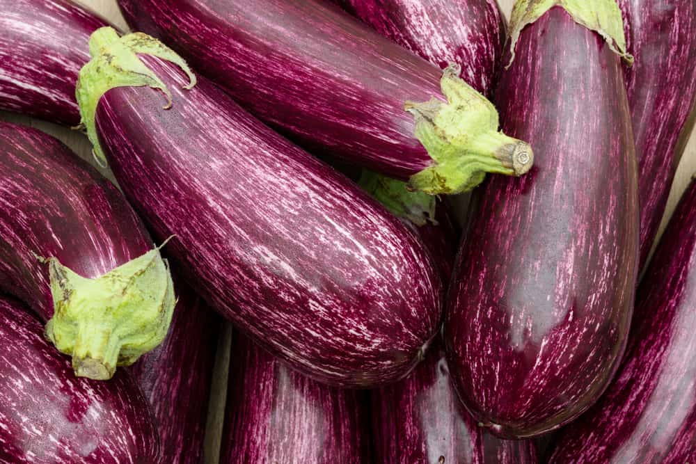 More than a dozen Italian eggplant varieties come in many shapes, styles, and forms. Although the flesh of these vegetables is almost always a creamy white color (and known for its rich, nutty flavor), you can find Italian eggplant with skin in shades of white, purple, black, or even multicolored.