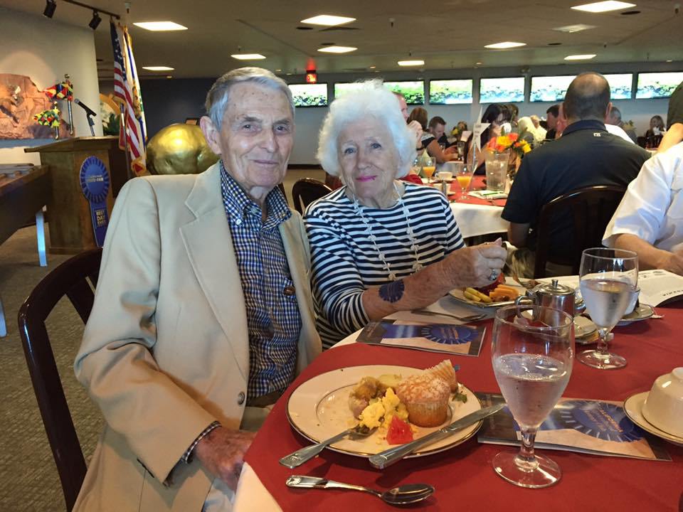 Former CDFA director Richard Rominger and his wife, Evelyne, at this morning’s Ag Heritage Breakfast. Evelyne is sporting a temporary blue ribbon tattoo supplied by the California State Fair. (Image courtesy of CDFA)