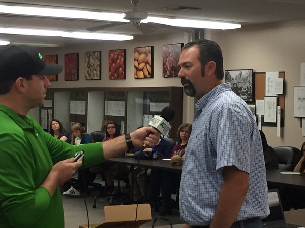 Students from Clovis East, Madera South, Central West and others make up the Fresno section of the FARMS Leadership program. The students watched AgNet West’s Taylor Hillman interview Central Valley Grower Matt Efird at the Fresno Farm Bureau. Efird talked about the challenges they face in farming which include water quality and efficiency. AgNet West’s Sabrina Hill talked to the students about agriculture journalism and the differences between radio and print mediums.