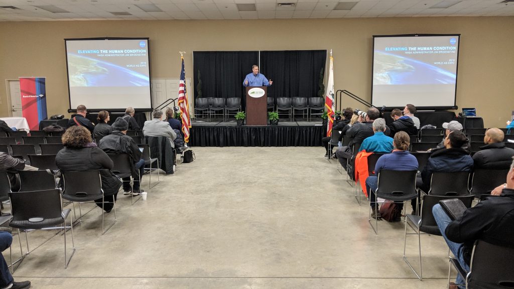 Johansson and Bridenstine also spent some time touring the grounds of the World Ag Expo, stopping in at various ag technology vendors to see what appears to be resonating with the industry, including a conversation and flight demo with AeroVironment. Bridenstine mentioned some of the potential for the future of blending information gathered through lidar and spectroscopy and increasing water efficiency even further on a larger scale.