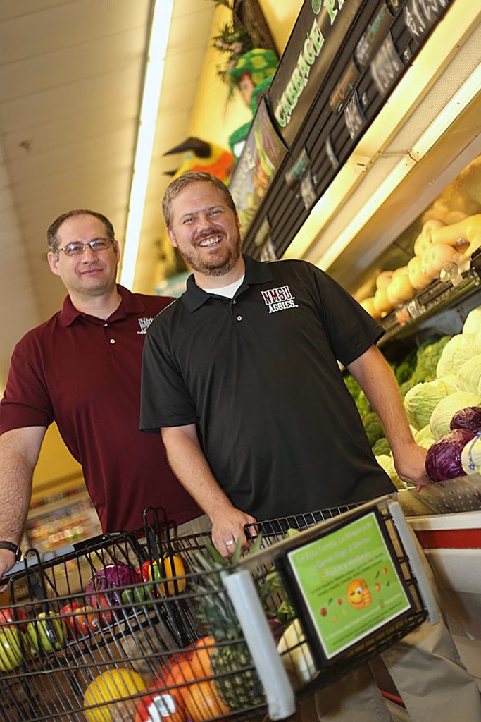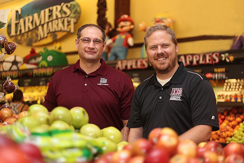 Collin Payne and Mihai Niculescu, both College of Business marketing professors and co-directors of NMSU’s Consumer Behavior Laboratory, are using unconventional in-store marketing techniques to influence grocery shoppers to head for the produce section and fill their baskets with more nutritious foods.