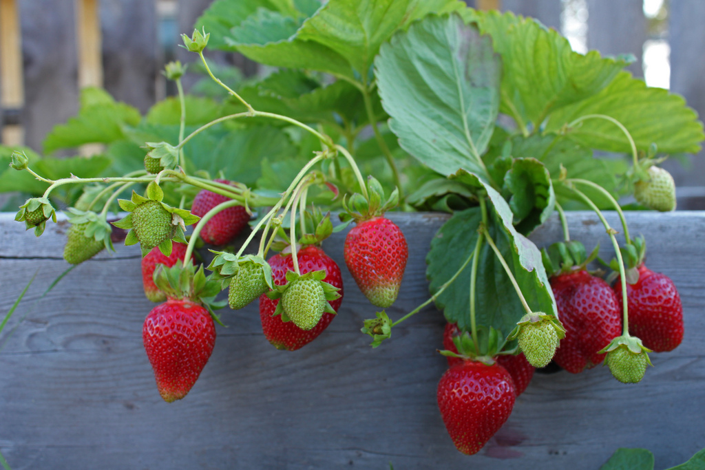 Image credits (top left: Strawberries in a planter box.): Odnata98/Flickr