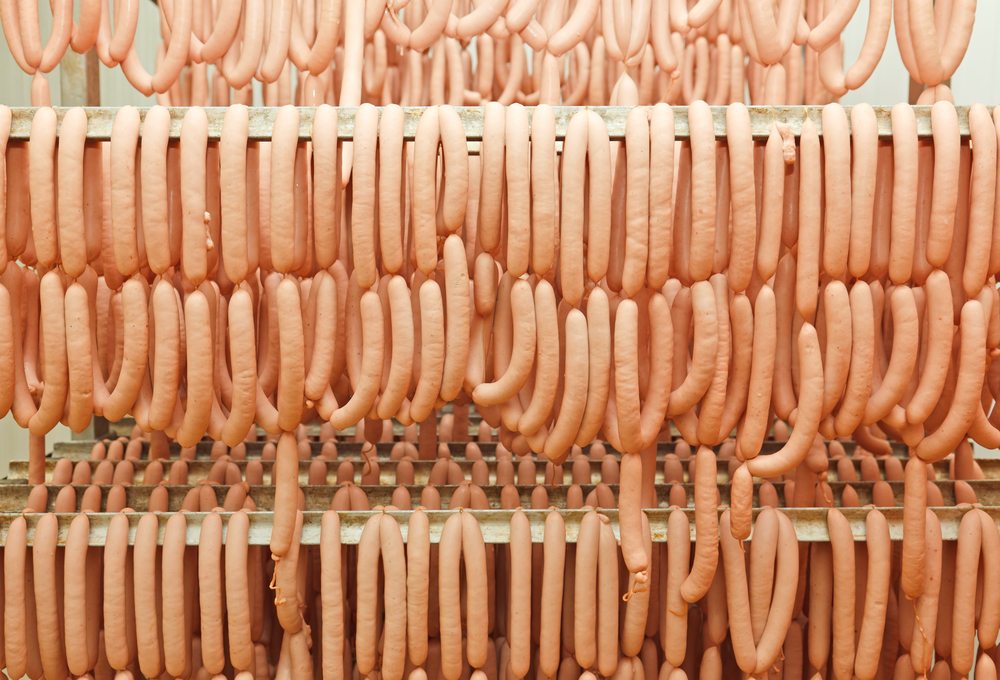 - Hot dogs hanging in factory