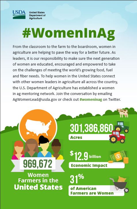 To coincide with the release of the new infographics, each day this week, we’ll feature advice and stories from women in agriculture at various stages in their lives and careers. Be sure to check back on the USDA blog later today for our first of five #womeninag blogs this week, featuring Katy Coba, the Director of the Oregon Department of Agriculture.