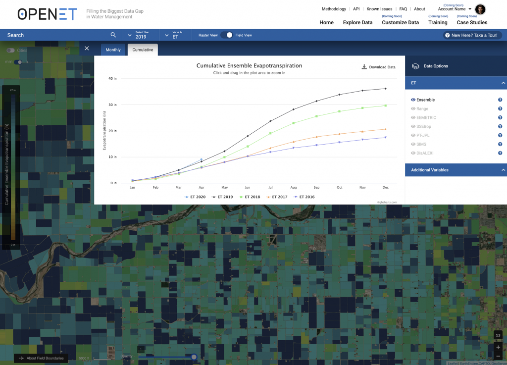 The OpenET project uses publicly available data to make methods for evapotranspiration estimations more accessible for a broader audience.  Currently, timely satellite-based data related to water use is fragmented and not cost-effective for many producers. More accurate information on water usage will not only benefit farmers and ranchers, but it will also assist entire communities in addressing water issues.
