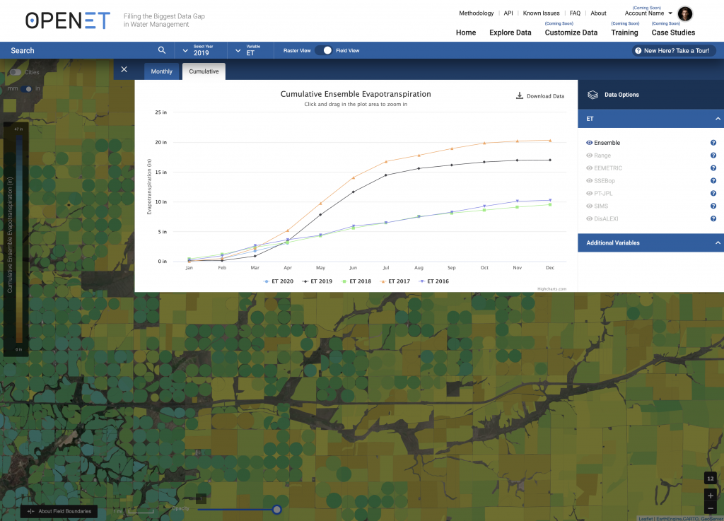 Field-scale ET data will be available for 17 states through the OpenET project, with an expectation of expanding the project throughout the United States. As the Sustainable Groundwater Management Act has established guidelines for groundwater budgeting, the OpenET tool will provide critical information that can assist with balancing groundwater supplies. The OpenET application is expected to be available to the public sometime in 2021.