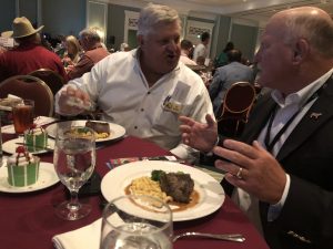 NCBA President Kevin Kester from California visits with FCA Executive Director Jim Handley during the Youth Appreciation Luncheon during this week’s Florida Cattlemen’s Association Annual Convention in Orlando.