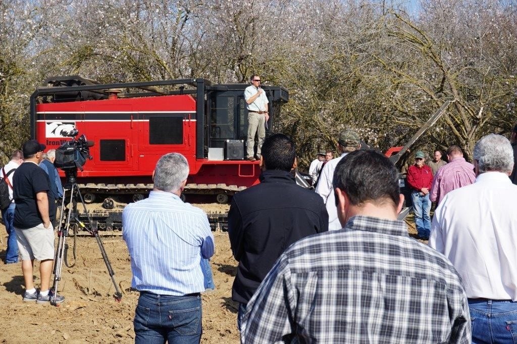 An impressive tree grinding demonstration showed growers the possibility of capturing organic matter from orchard removal. University of California Department of Agriculture and Natural Resources hosted the event where IronWolf showed how their machine works. Cooperative Extension Farm Advisor Brent Holtz talks about the research.