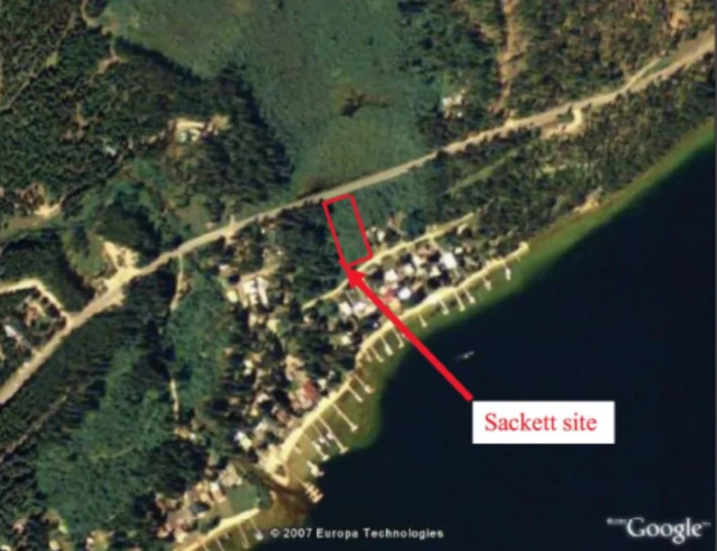 This image from the amicus brief of the Idaho Conservation League shows that the wetlands on the Sacketts’ property are connected to the wetland across the road and the lake nearby.
