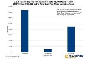 This outreach prompted South African buyers to make purchases of U.S. sorghum of about 45,000 metric tons (1.7 million bushels) in 2015/2016.