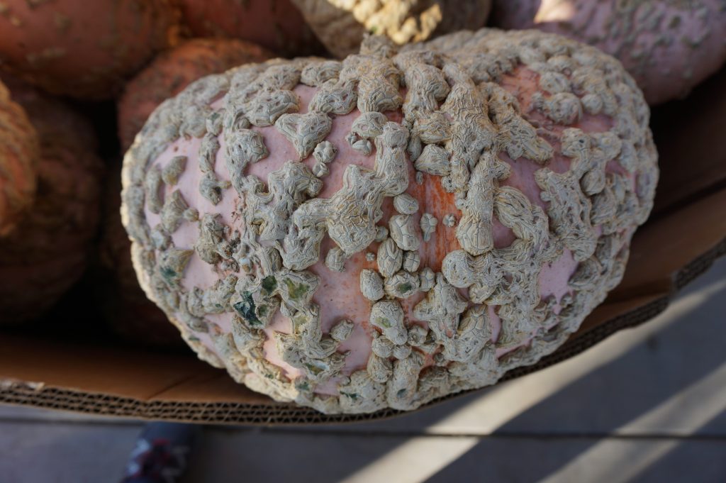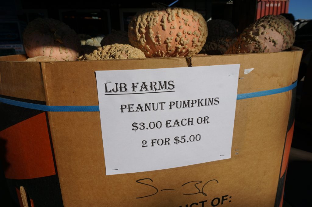 On the other side of the spectrum is a small, yet well-known roadside stand in San Martin. Crates of odd looking pumpkins and squash litter the front of LJB Farms, a family-owned business peddling food just off Highway 101 for over four decades. “My brother and I started it back in 1976 or 1978. We were selling pears on a table out in front,” Ranch Manager Russ Bonino said. The stand sells sweet corn, tomatoes, many varieties of squashes, zucchini and much more. In October, a hay-lined pumpkin patch displays their many different varieties. “Between the pumpkins, jack-o-lanterns, decorative ones and all, I would say 15 to 20 different varieties,” Bonino said. “I’d say probably 90 percent go to straight decoration.” One of the more eye-catching varieties is what LJB Farms calls ‘Peanut Pumpkins’, which looks as if someone glued peanut shells to the outside of a cloudy-orange pumpkin.