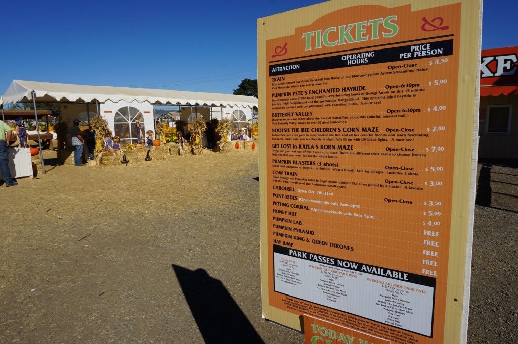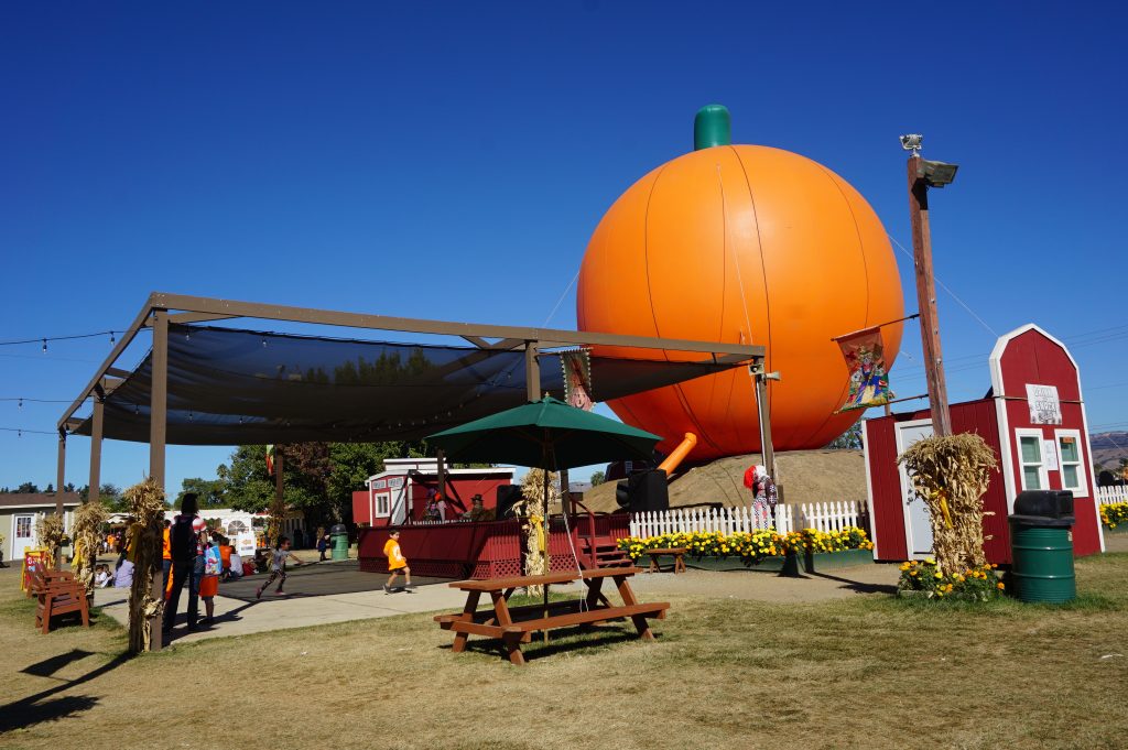 Somewhere in the middle of the spectrum between LJB Farms’ roadside stand and Dell’Osso’s amusement park lies two locations for Uesugi Farms. The operation has the smaller Spina Farms Pumpkin Patch in the Coyote Valley just south of San Jose, and the larger Uesugi Farms Pumpkin Patch in San Martin. Both locations have attractions for children and families. Farm Manager John Spina runs the smaller of the two patches and said adding the entertainment has been necessary to compete. “Back in the day, we would plant a field of pumpkins…leave them on the vine…make a parking lot for the people and they would come get their pumpkins. Just a much simpler time,” he said. “Now it’s different. To bring the people out, you have to add the pony rides, the train rides, the hay rides.”
