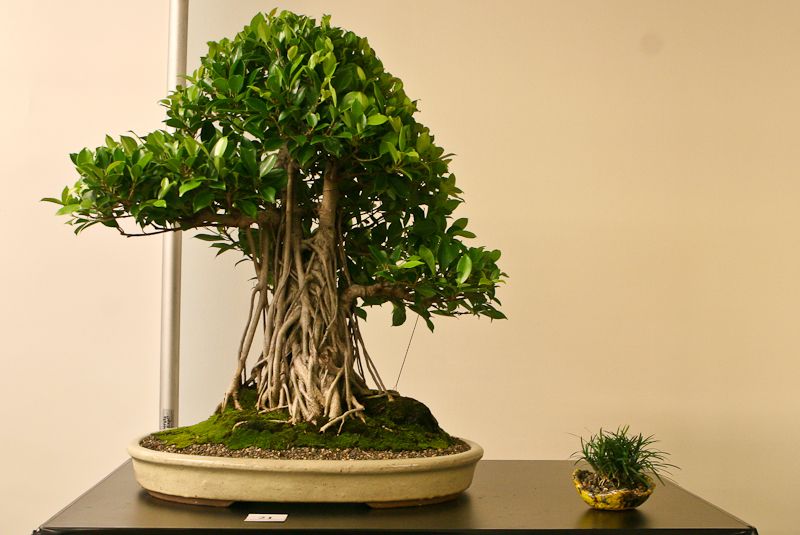 A stunning tree specimen in the Indian Fig Laurel. This is another variety that is great for beginners—it recovers readily from pruning mistakes (mistakes that might permanently stunt other types of bonsai trees). It is a fabulous indoor plant due to its tropical origins and preference for bright, indirect light. In temperate climates it can be planted outdoors in partial shade or even sun. It has shallow root systems, and its trunk can be sculpturally twisted, which lends itself nicely to many breathtaking bonsai styles.