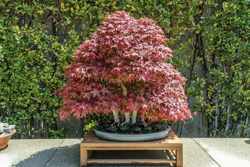One of the most adaptable outdoor bonsai trees, the Japanese Maple, is a hardy yet beautiful deciduous tree with numerous cultivars that present a wealth of colorful fall foliage. This tree likes sunny spots, but will struggle with midday heat and might do well to be in light shade during those hours.