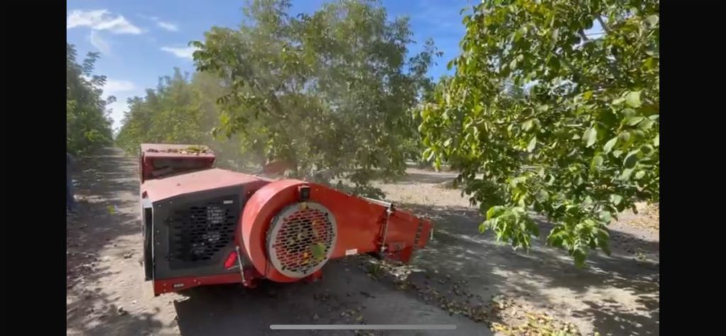 The Synergy Blower is a hydraulically driven berm blower that has been integrated into the Flory VR700 Side Mount Shaker. It was designed to clean berms during the almond and walnut tree shaking process. Eliminating an entire sweeping pass, it reduces passes by up to 50%, resulting in less dust, cleaner windrows, reduced equipment usage, and lower labor demands. The hydraulically powered fan and damper are easily and quickly controlled from the cab to suit specific orchard conditions, providing growers with a practical and efficient harvesting solution.