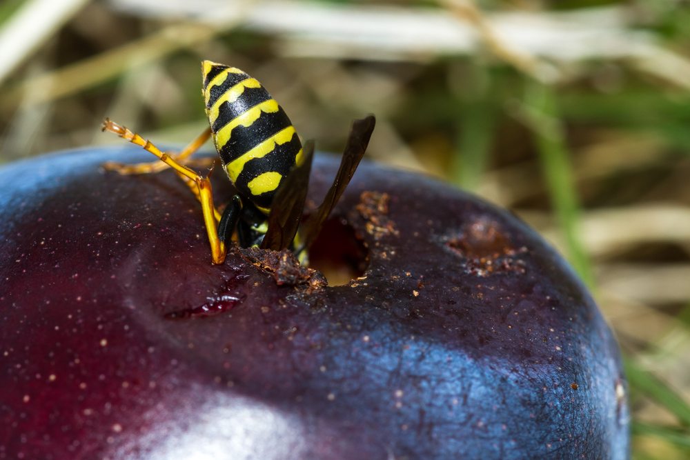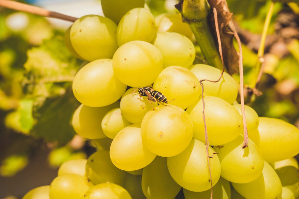 - Yellow jacket wasps eating grapes